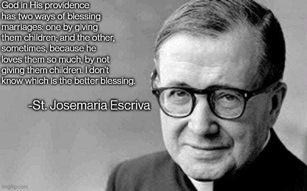 St. Josemaria Escriva has helped me to begin pondering the mystery of infertility as a blessing. The saints did also count themselves blessed when they suffered, and of course this is because they were more perfectly conformed to our Lord. Is it possible that He shows His great love for us in leaving our prayers unanswered? I wonder if the words of Psalm 22, “My God, my God, why have you forsaken me,” can be just as much a prayer of thanksgiving as they are an expression of sorrow.
